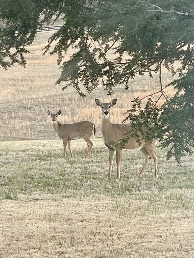 The deer and I watch each other through the glass until the light turns the color of a bruised peach. We’re just two tenants in an increasingly small realm. They drift toward the shadows of my crepe myrtle where I’d deconstructed a bird bath, turning it into a corn feeder. What else can I do? The City Council approved the new high-end subdivision with a clubhouse. I can barely get my recycling bin on a regular schedule, so my opinions carry no weight.